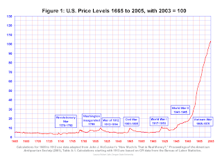 | Nearly all Americans know they are plagued by inflation. In 1962, a postage stamp cost four cents, a candy bar a nickel, a movie ticket 50 cents, and a pair of tennis shoes $5. A new imported Renault automobile cost $1,395, annual tuition at Harvard was $1,520, and the average cost of a new house $12,500. Over the last century, a dollar's purchasing power has declined over 95 percent — i.e., it won't buy what a nickel did in 1909. What causes inflation? The public hears various explanations from the establishment media — that oil's rising cost causes inflation, since nearly all industry sectors use it; or that inflation is the fault of American workers demanding wage increases, which has a ripple effect throughout the economy. In other words, Joe tells his employer, "Boss, my wife's expecting. How about a raise?" The boss says, "Joe, the only way I can afford that is by raising our prices — I'll have to pass the cost on to our customers." Then firms doing business with Joe's company say, "Since you've raised your prices, we'll have to raise ours." And so, all across America, prices rise because "greedy" Joe, and millions like him, asked for a raise. Furthermore, the public has been lulled into believing that inflation is inevitable, like "death and taxes." Indeed, based on the Consumer Price Index (CPI), the broad index used to measure the price of goods and services, that seems true. America has experienced general price increases every year since 1955, without exception. But as we can easily prove, inflation is not inevitable. Figure 1 depicts American price levels from 1665 to the present. Note there was no significant increase for the first 250 years. Little blips upward are on the graph, as during the American Revolution, War of 1812, and Civil War, when the United States issued large quantities of paper money to pay for those conflicts. Of course, increasing the supply of money (which is what inflation really is) diminishes its value, causing prices to rise. But notice that, after the wars, money always returned to its normal value. A dollar in 1900 was worth the same as in 1775; there had been no net increase in the cost of living since George Washington's day. Throughout this time, Americans asked for, and received, wage increases, without causing prices to rise overall. But look at the graph's right side. During World War I, our currency inflated, but instead of resuming its normal value afterwards, it continued inflating out of sight. American money, relatively stable for 250 years, began to rapidly and permanently lose its value. This did not happen by chance; every effect has a cause. Around the time of World War I, something significant must have happened to induce this transformation. As we shall see, the cause of this transformation has nothing to do with Joe and others who, suffering from the effects of inflation, asked for a raise. The Bankers' Beast The change came from a single factor: creation of the Federal Reserve in 1913. Though most Americans have heard of it, few know much about it. Ben Bernanke is current chairman of the Federal Reserve Board; Alan Greenspan held that position from 1987 to 2006. The Fed chairman has been called America's economic czar, because he and the board set U.S. interest rates. This in turn impacts the stock market's direction. If interest rates rise, CDs and other interest-bearing securities appear more profitable, causing money to flow out of the riskier stock market. But if interest rates fall, investors tend to return to stocks (the recent meltdown notwithstanding). Mutual fund managers try to stay ahead of the curve; when the Fed chairman holds a news conference, their fingers are often poised over their "buy" and "sell" buttons, hoping the chairman will reveal some hint about the direction of interest rates. The Fed was established when Congress passed the Federal Reserve Act in 1913. But the original legislation, containing the essential points of that act, was introduced by Senator Nelson Aldrich, front man for the banking community. Few today have heard of Aldrich, but many are familiar with billionaire Nelson Rockefeller, who was Gerald Ford's vice president, long New York's governor, and one of America's richest men. His full name: Nelson Aldrich Rockefeller — named for his grandfather, Nelson Aldrich. Aldrich's daughter married John D. Rockefeller, Jr., and his son Winthrop served as chairman of the Rockefellers' Chase National Bank. Long associated with America's richest family, when Nelson Aldrich spoke on Capitol Hill, insiders knew he was acting for the Rockefellers and their allies in high finance. The legislation he introduced in the Senate, which became the basis of the Federal Reserve System, was not written by him. It was crafted by several of the world's richest bankers, at a secret nine-day meeting in 1910, at a private club on Jekyll Island off the Georgia coast. This is well documented. The first reporter to break the Jekyll Island story was B.C. Forbes, founder of Forbes magazine. Many years ago, Citibank was called National City Bank, and was largely controlled by the Rockefellers. Its president, Frank Vanderlip, attended the Jekyll Island meeting and discussed it in The Saturday Evening Post 25 years later: There was an occasion near the close of 1910 when I was as secretive, indeed as furtive, as any conspirator.... I do not feel it is any exaggeration to speak of our secret expedition to Jekyll Island as the occasion of the actual conception of the Federal Reserve System.... We were told to leave our last names behind us. We were told further that we should avoid dining together on the night of our departure. We were instructed to come one at a time and as unobtrusively as possible to the terminal of the New Jersey littoral of the Hudson, where Senator Aldrich's private car would be in readiness, attached to the rear end of the train for the South. Once aboard the private car, we began to observe th